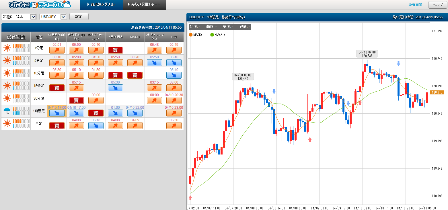 テクニカルでの売買シグナル・通貨ペアの強弱ランキングをリアルタイム表示!